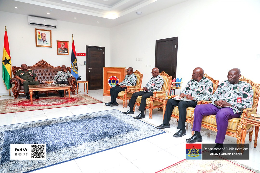 A delegation from the Veterans Administration Ghana (VAG), led by Rear Admiral Peter Faidoo (Rtd), has paid a courtesy call on the Chief of the Defence Staff (CDS), Lieutenant General (Lt Gen) William Agyapong at the General Headquarters on Friday, 19 September 2025. The visit was to officially congratulate the CDS on his appointment and discuss key Administrative concerns.